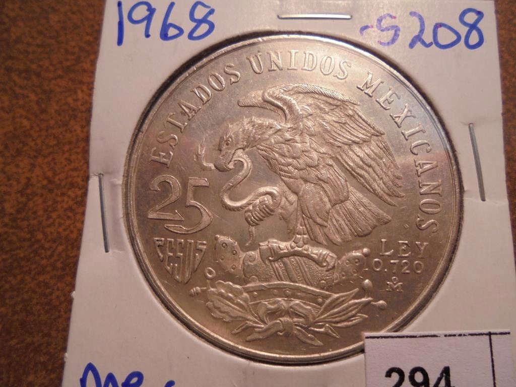 1968 MEXICO SILVER 25 PESOS OLYMPICS .5208 OZ. ASW
