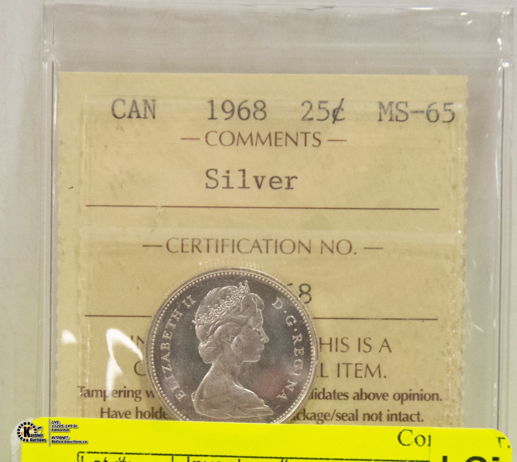 1968 MS65 CERTIFIED CANADIAN SILVER QUARTER