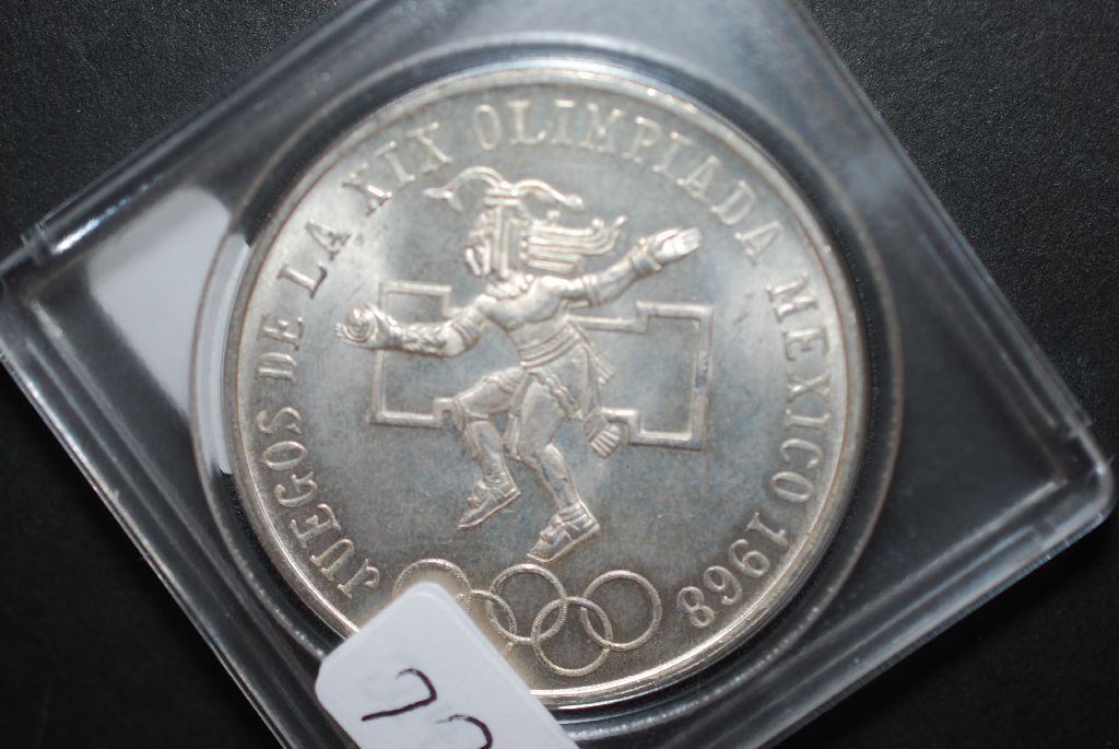 1968 Mexico Olympic 25 Pesos Foreign Coin In Display Case; 0.720 Ley; EST. $20-30