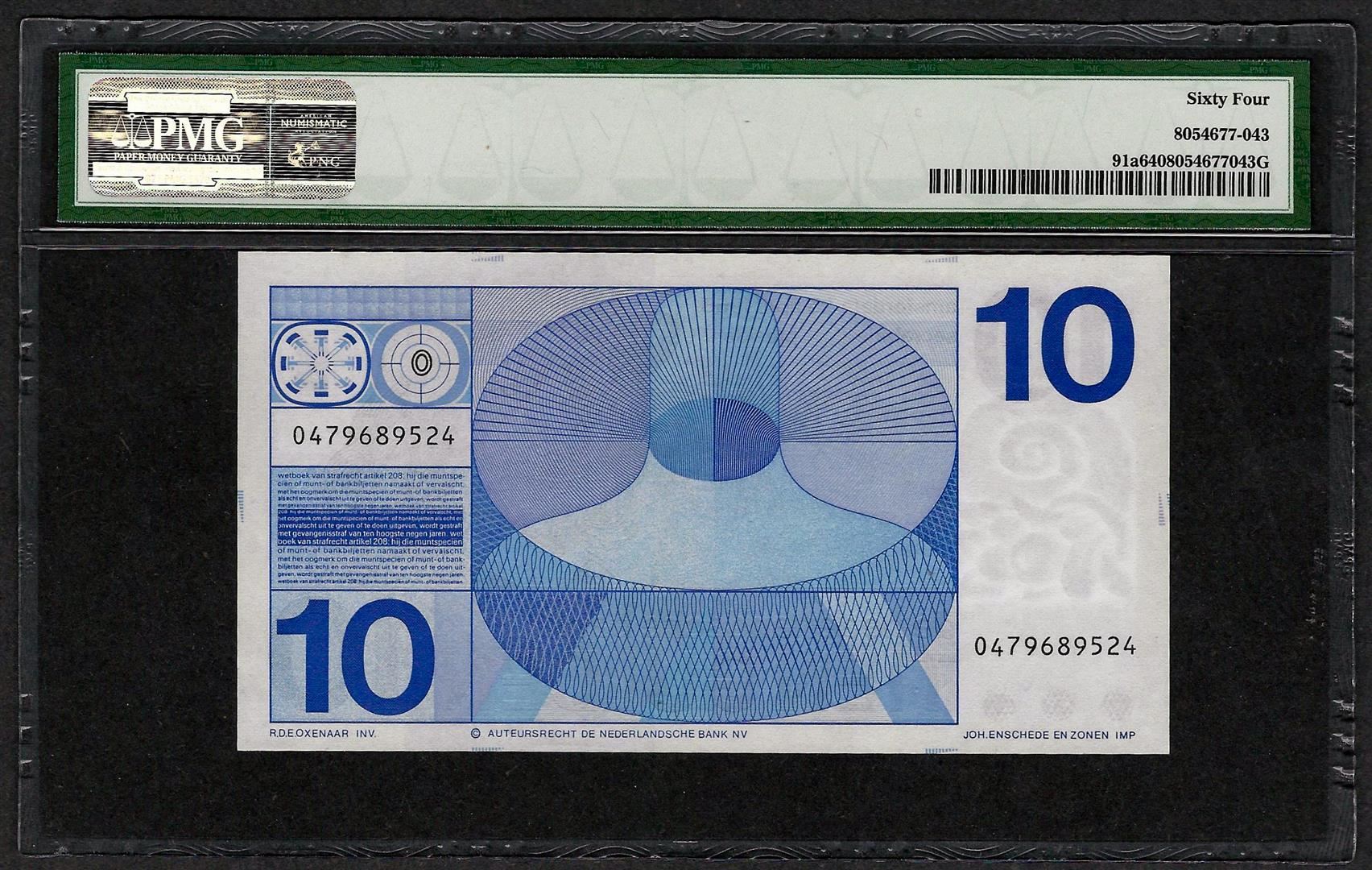 1968 Nederlandsche Bank Netherland 10 Gulden Note Pick 91a PMG Choice Uncirculat