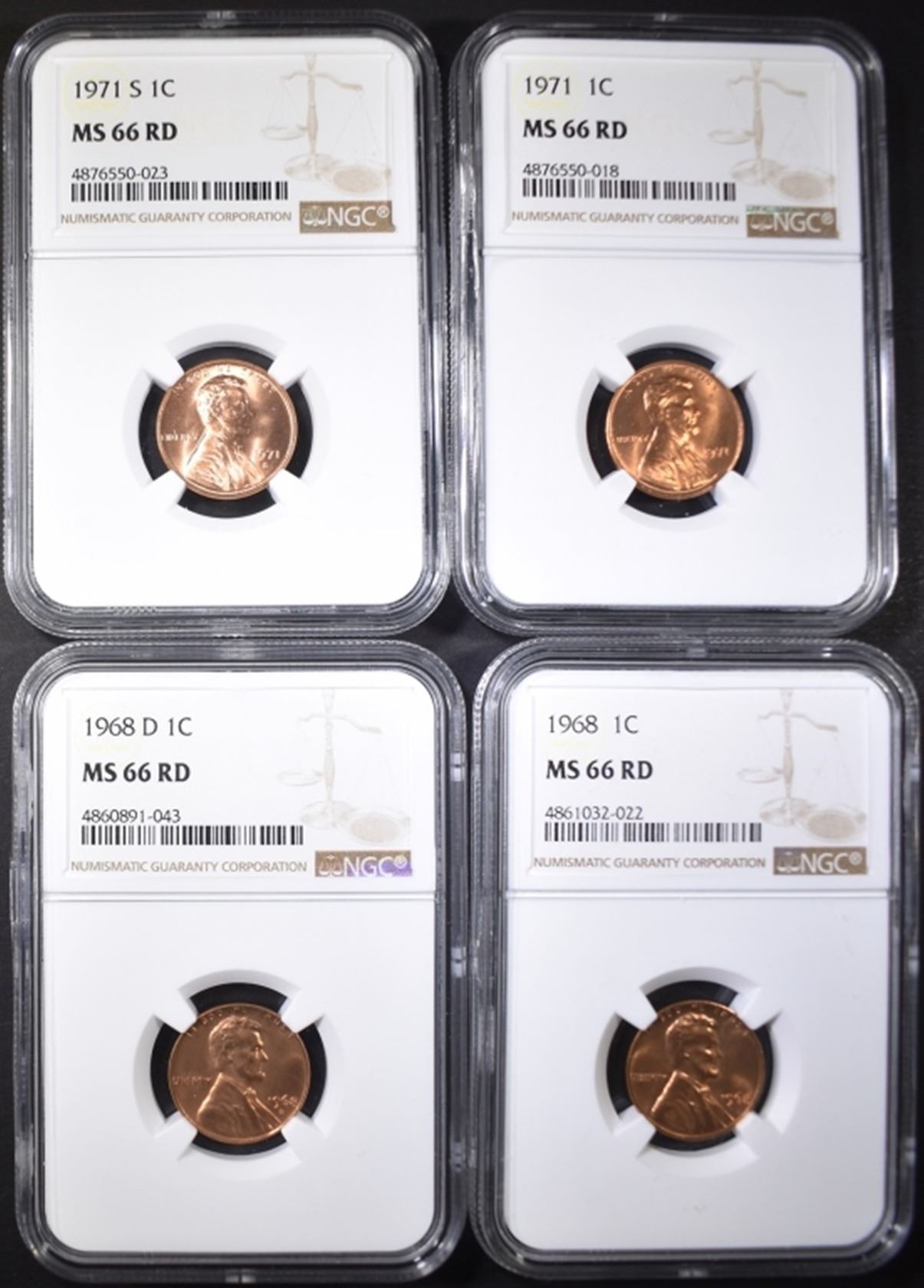 1968-P&D, 71-P&S LINCOLN CENTS, NGC MS-66 RED