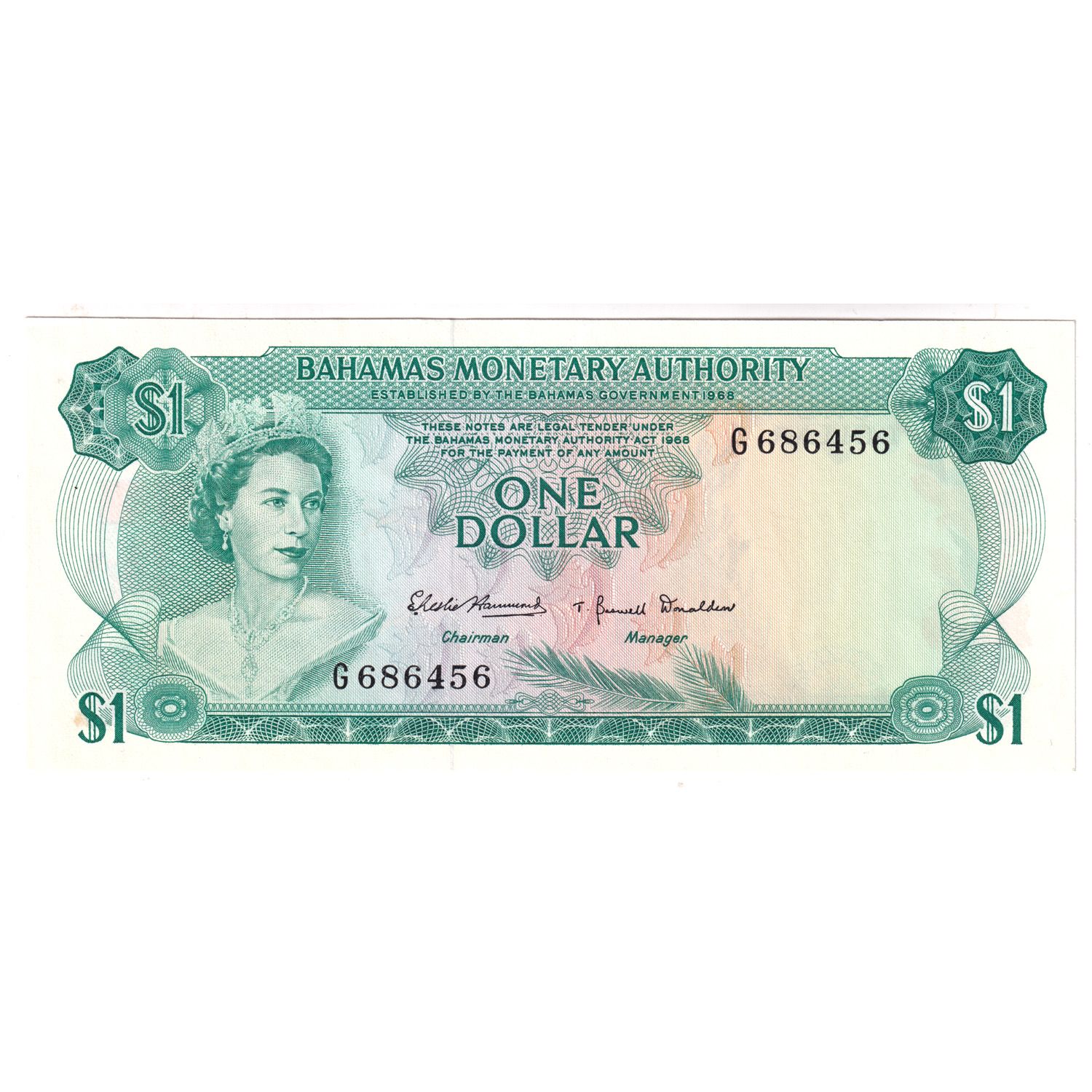 1968 Pick #27a Bahamas $1 AU-UNC (glue residue)