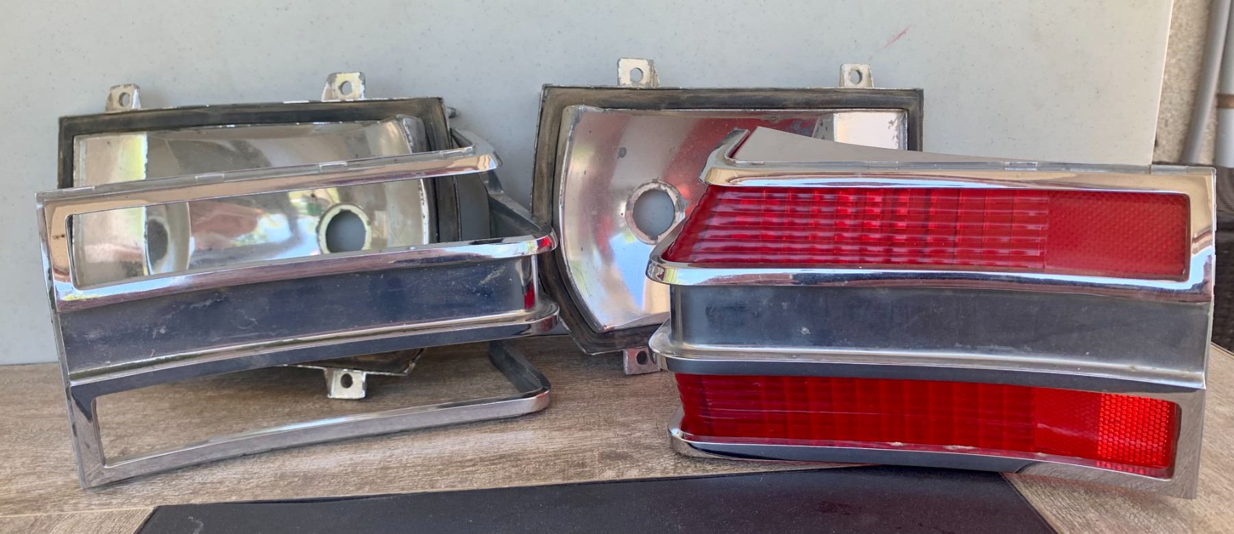 1968 Pontiac Beaumont Tail Light Chrome Trim and inner assemblies with 1 Lens rare!