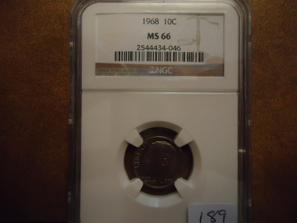 1968 ROOSEVELT DIME NGC MS66