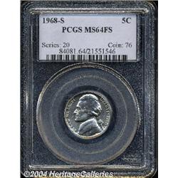 <B>1968-S<5C> MS64 Full Steps PCGS.</B></I> Lustrous surfaces are virtually untoned. A few small marks limit the grade. Population: 3 in 64, 6 finer (9/04). <BR><BR><B>Important notice:</B> Heritage usually auctions material at the rate of 200-250 lots per hour. On some occasions eBay Live bid software or the Internet may not be able to keep up with the pace of the auction. We recommend placing a realistic absentee bid now as insurance to avoid disappointment. Occasionally the auctioneer may eliminate or reject an eBay Live bid, and the auctioneer may also reopen a lot after the close of the eBay live bidding (usually because we missed an audience bid), and may reject your bid even if it shows you as the winning bidder. By bidding via eBay Live, you agree that Heritage may award the lot to another bidder at its sole discretion under the circumstances described above or any other reasonable circumstances. Since eBay bids are not shown to us until we open the lot on the floor, we treat those bids just like floor bids. In most cases the floor responds before the eBay bid is presented to us, due to Internet lag time, so for consistency we have made it a policy that floor bids are always considered first over tie eBay live bids. Also please note that all Heritage lots purchased through eBay Live carry a 20% Buyer's Premium. Please make sure you read the Terms and Conditions before you bid.