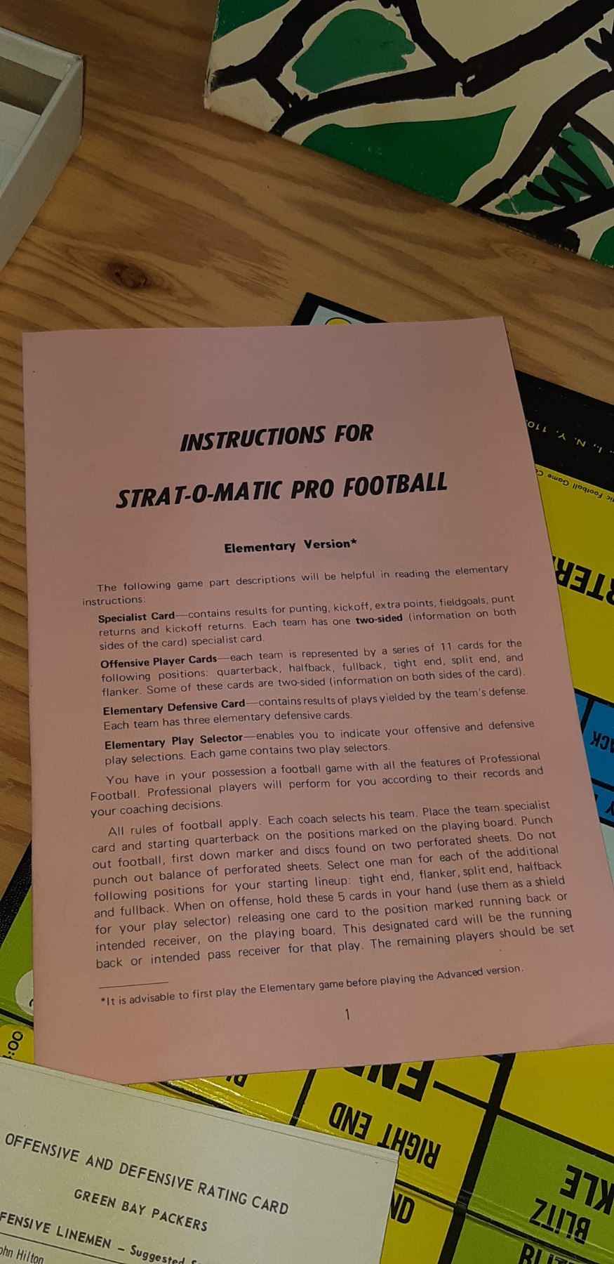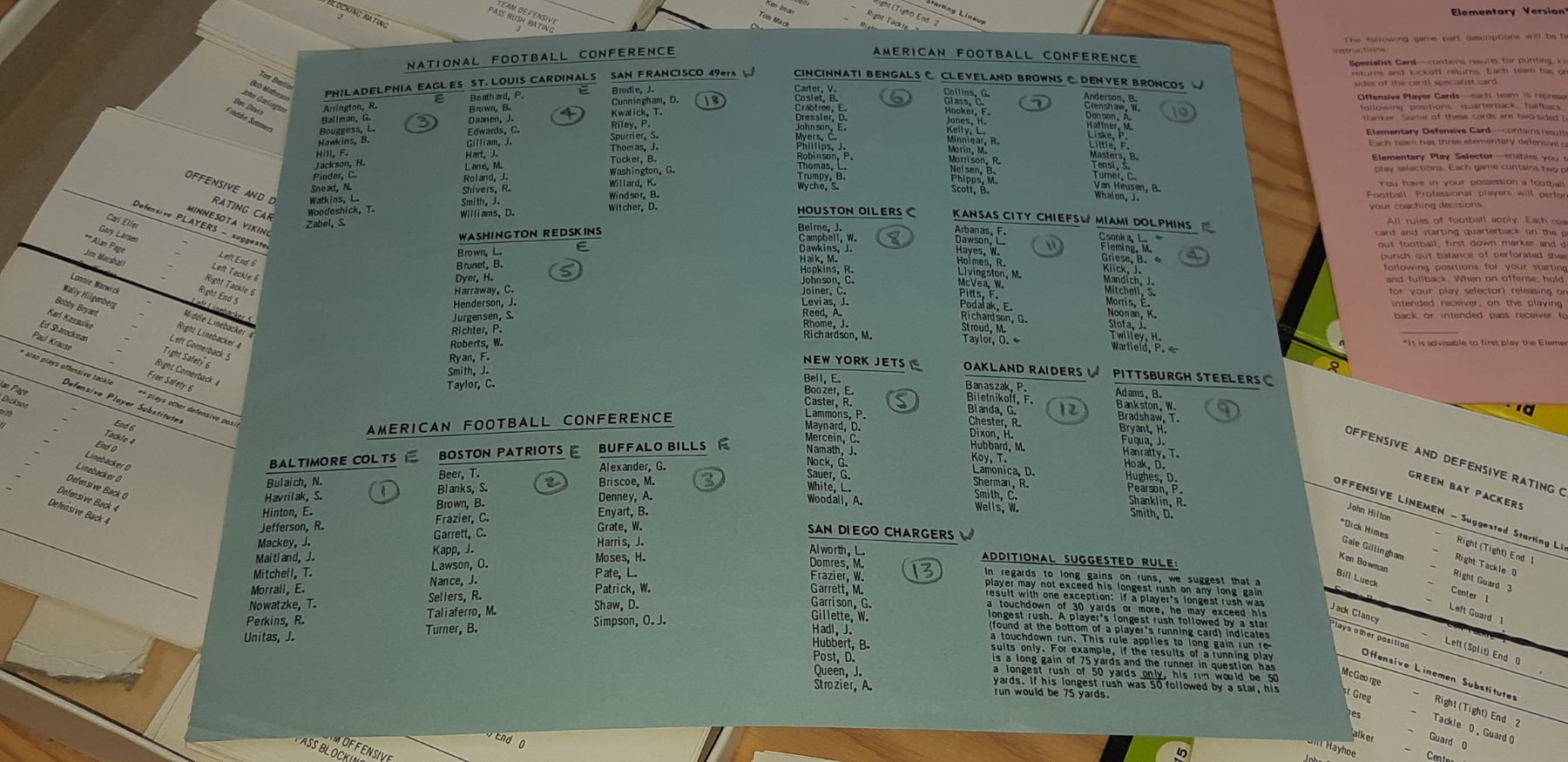 1968 "STRAT-O-MATIC" FOOTBALL GAME
