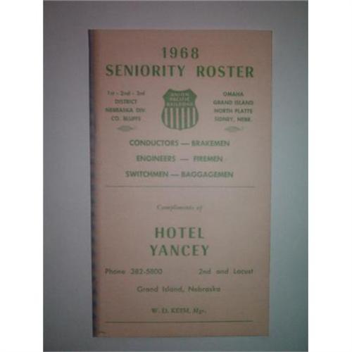 <tr><td>Title:1968 Seniority Roster "Union Pacific R.R."</td></tr>