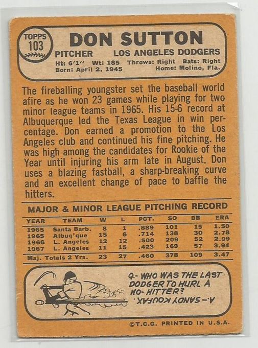 This Vintage card of Hall of Famer Don Sutton is in Excellent Condition.