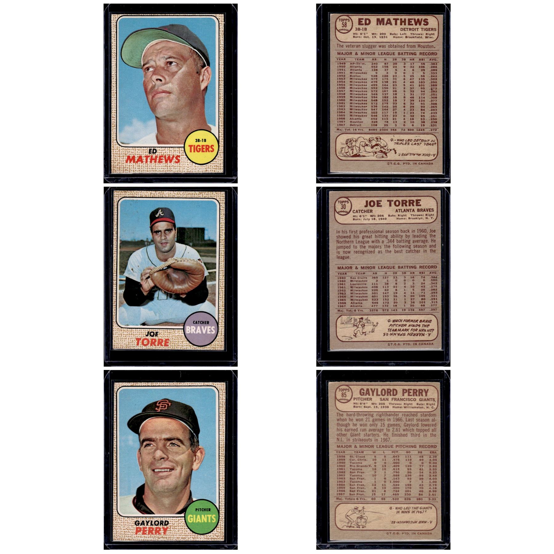 1968 Topps Vintage Cards: Matthews, Torre, Perry