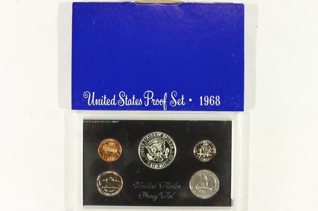 1968 US PROOF SET WITH BOX, 40% SILVER JFK HALF