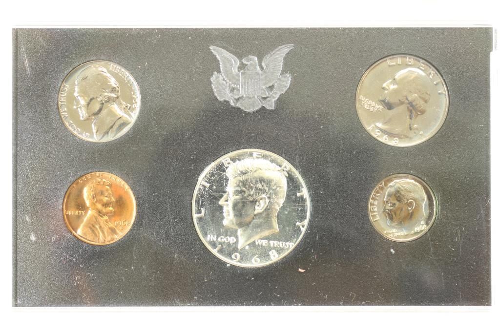 1968 US PROOF SET WITHOUT BOX, 40% SILVER JFK HALF
