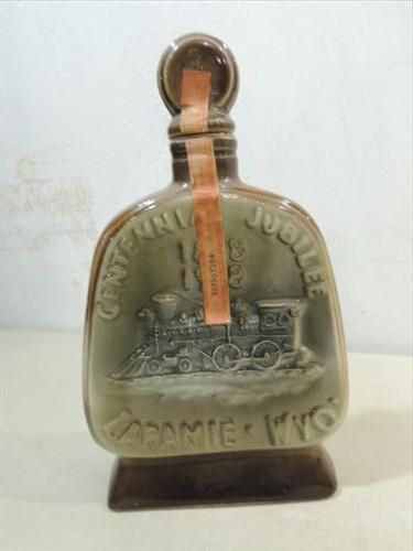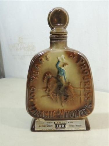 1968 VINTAGE JIM BEAM WHISKEY CERAMIC DECANTER: 100 YEARS OF PROGRESS WYOMING. AS SHOWN. VIEW PICTURE FOR DETAIL.