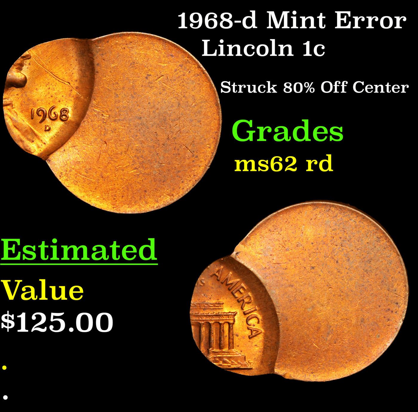 1968-d Mint Error Lincoln Cent 1c Grades Select Unc RD.