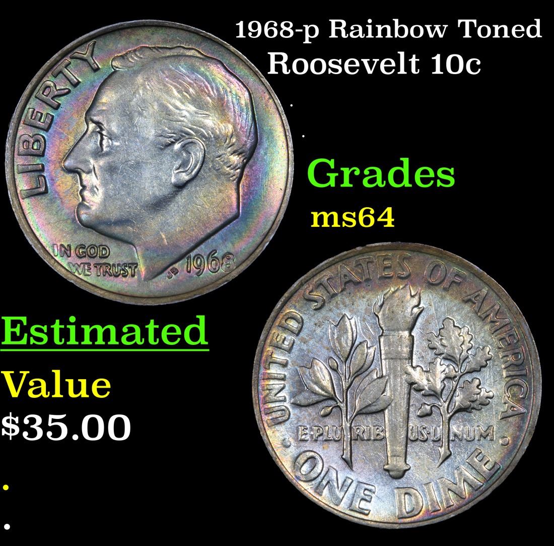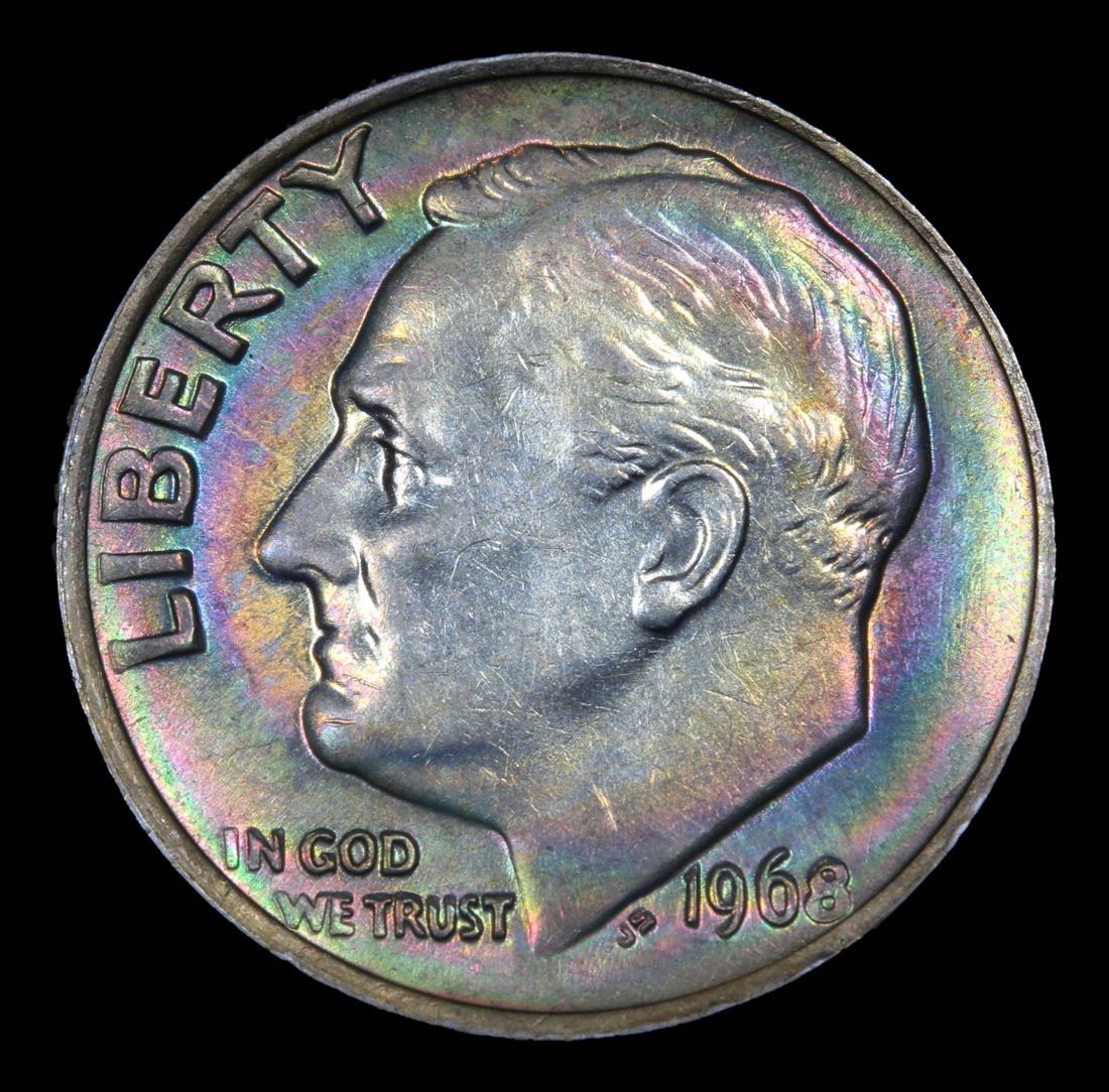 1968-p Rainbow Toned . . Roosevelt Dime 10c Grades Choice Unc.
