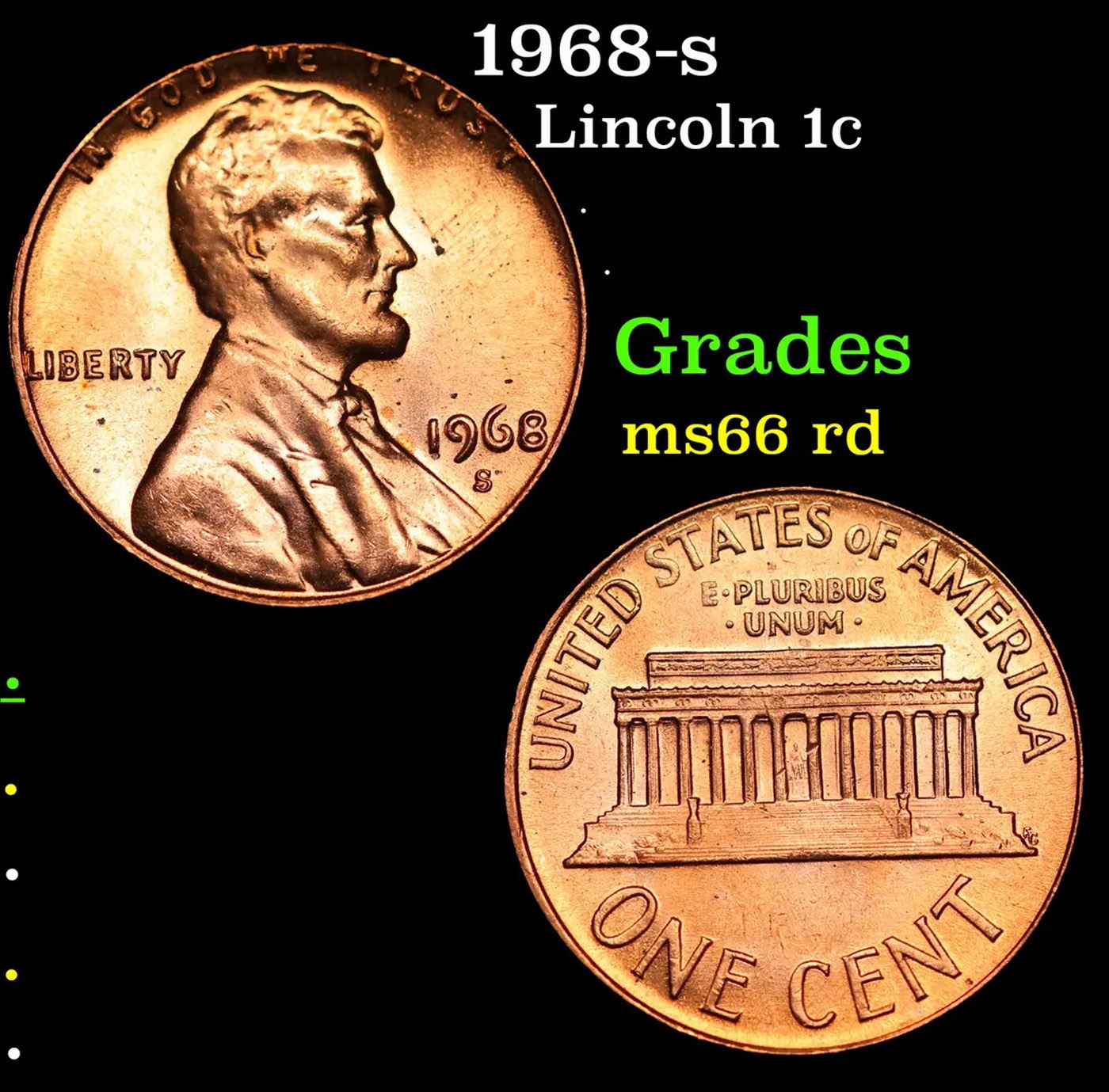 1968-s Lincoln Cent 1c Grades GEM+ Unc RD.