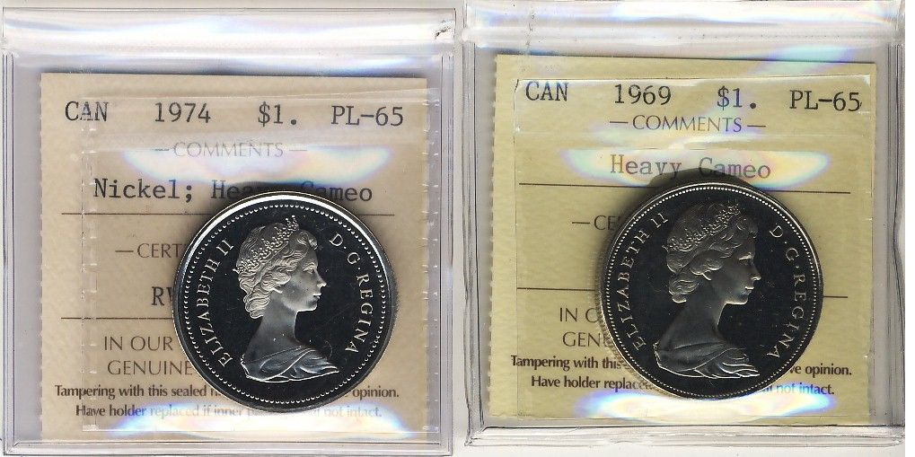 1969 $1 & 1974 ICCS PL65 Heavy Cameo. Lot of 2 coins.