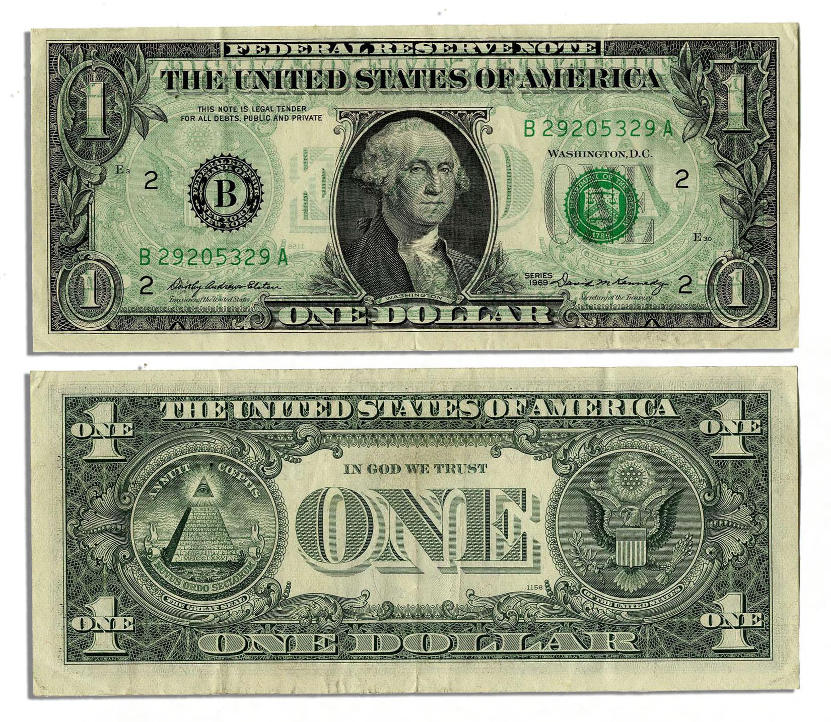 $1 Federal Reserve Error Note -- Series 1969, New York -- Back to Front Ink Transfer