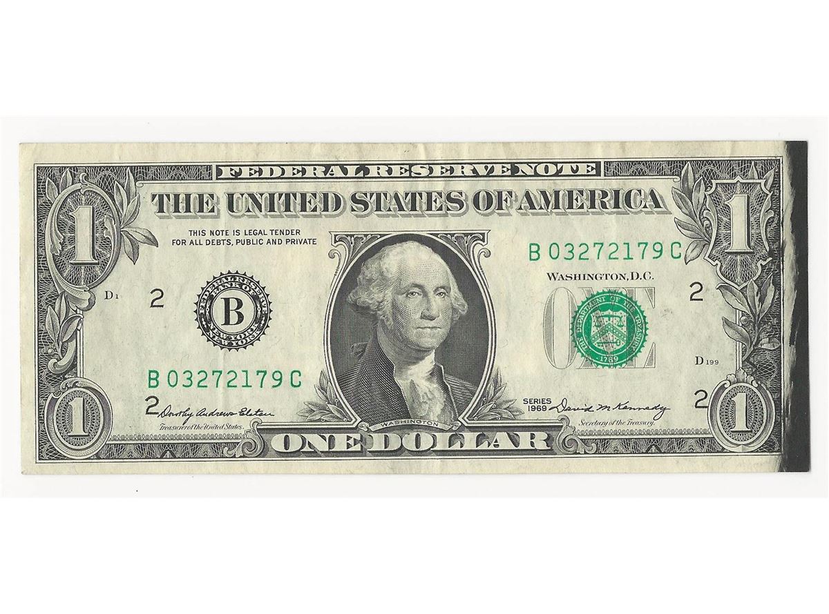 One 1969 $1 Federal Reserve Note ERROR Ink Smear.