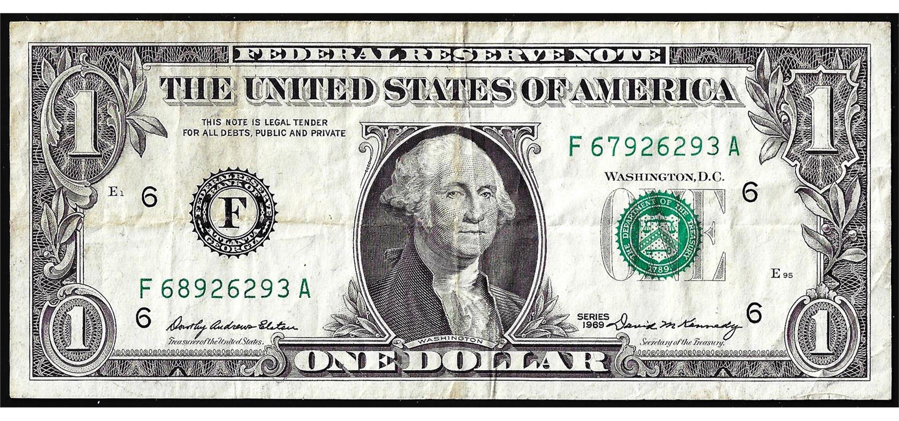 One 1969 $1 Federal Reserve Note Mismatch Serial Number Error>