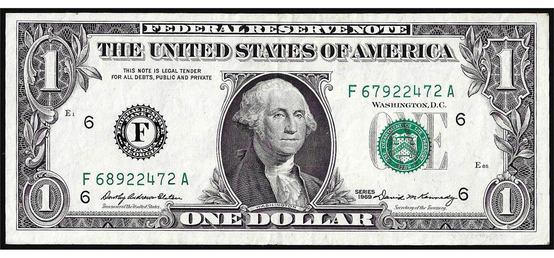 One 1969 $1 Federal Reserve Note Mismatch Serial Number Error>