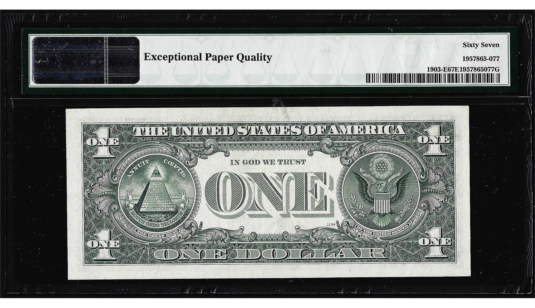One 1969 $1 Federal Reserve Note Richmond Courtesy Autograph PMG Superb Gem Unc 67EPQ. PMG Certified.