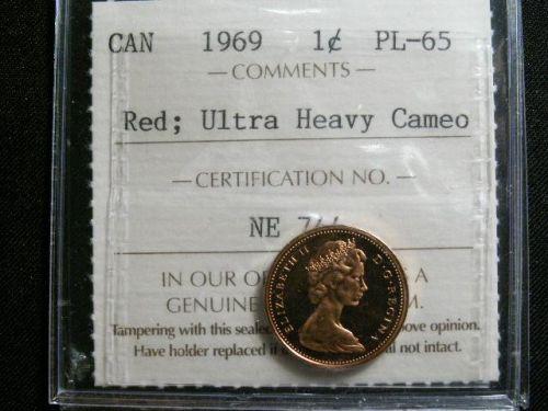 1969 1¢ ICCS PL65 Red PQ "ULTRA HEAVY CAMEO". A very flashy coin! Excellent strike and clean fields.