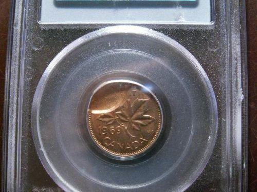 1969 1¢ PCGS MS62RB, ERROR, 20% Indented strike.