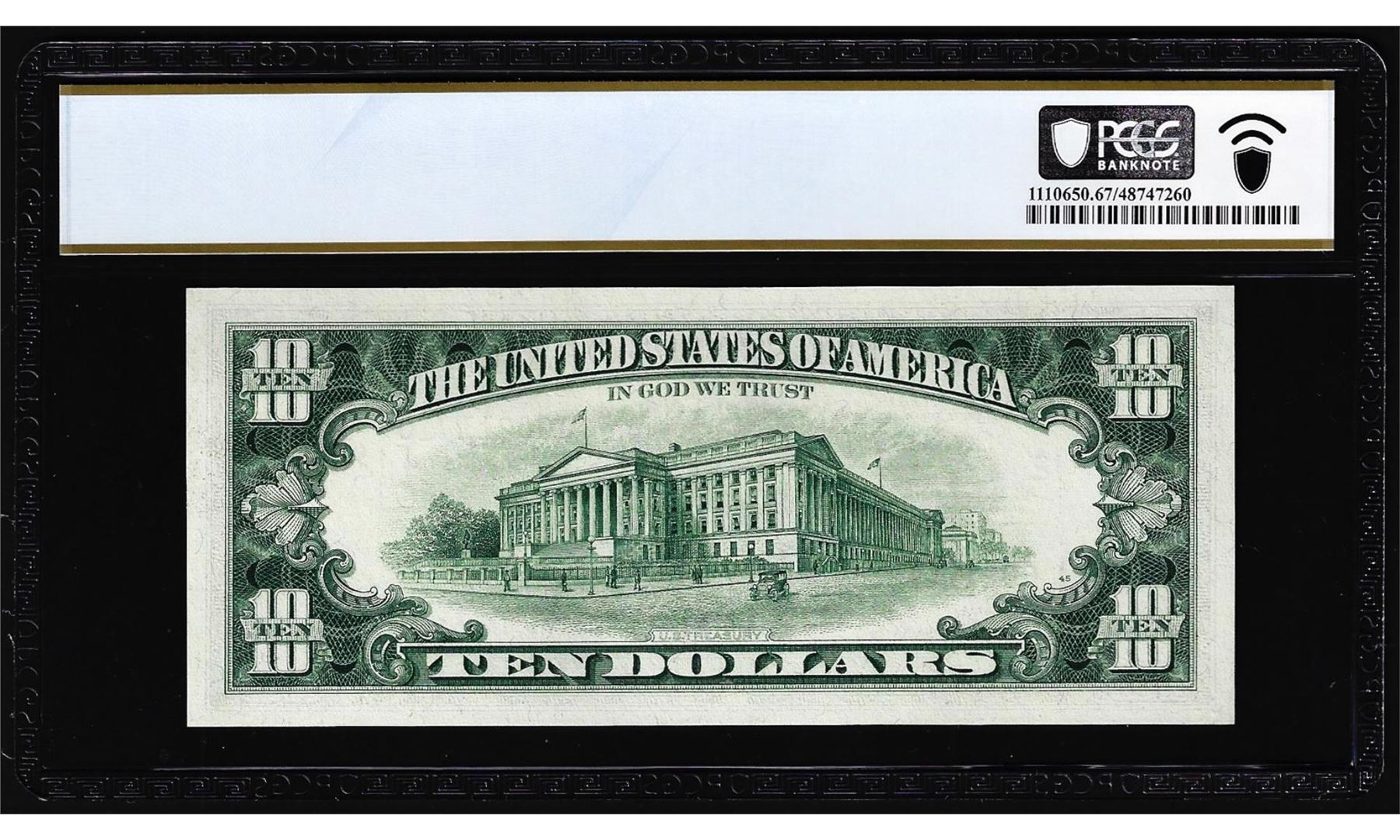 One 1969 $10 Federal Reserve STAR Note Fr.2018-L* PCGS Superb Gem Unc 67PPQ Top Pop. PCGS Graded.