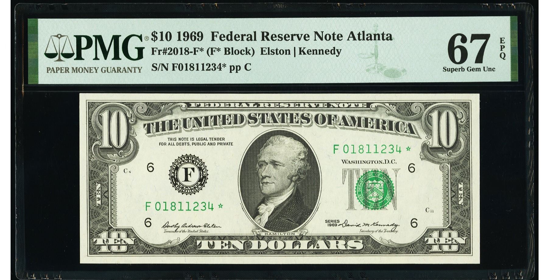 One 1969 $10 STAR Atlanta FRN PMG 67EPQ.