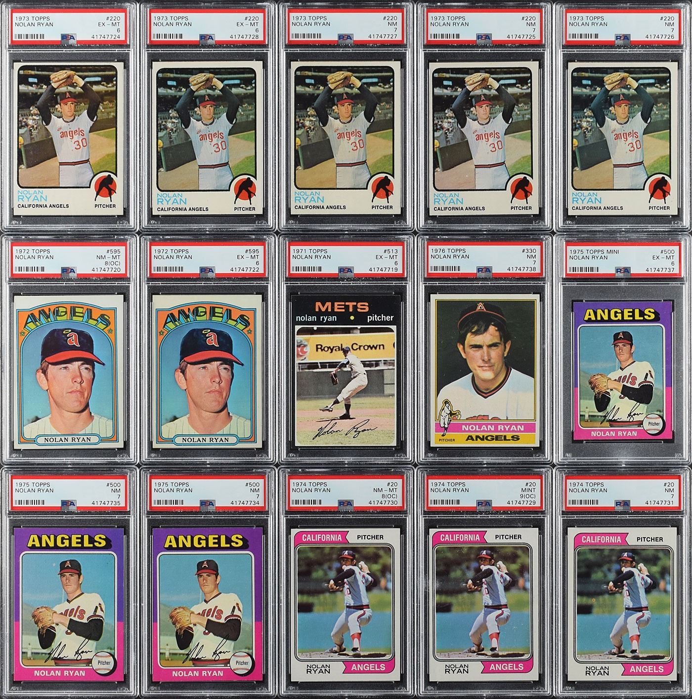 The greatest mound fire-baller of our generation is presented with a collection of his cards spanning his 25 years of pitching strikeouts. A total of 24 cards have been graded by PSA and plenty of high grade raw cards in this collection still worthy of third-party grading. The 1971 (2) and 1972 Topps raw cards below were sent to PSA but returned as Minimum Size Requirement.