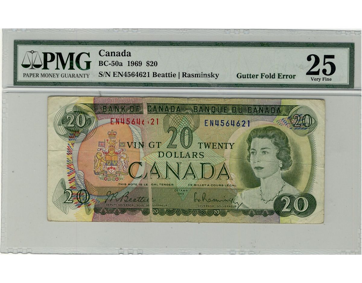 1969 $20 BC-50a #EN4564621 PMG VF25. Gutter Fold Error.