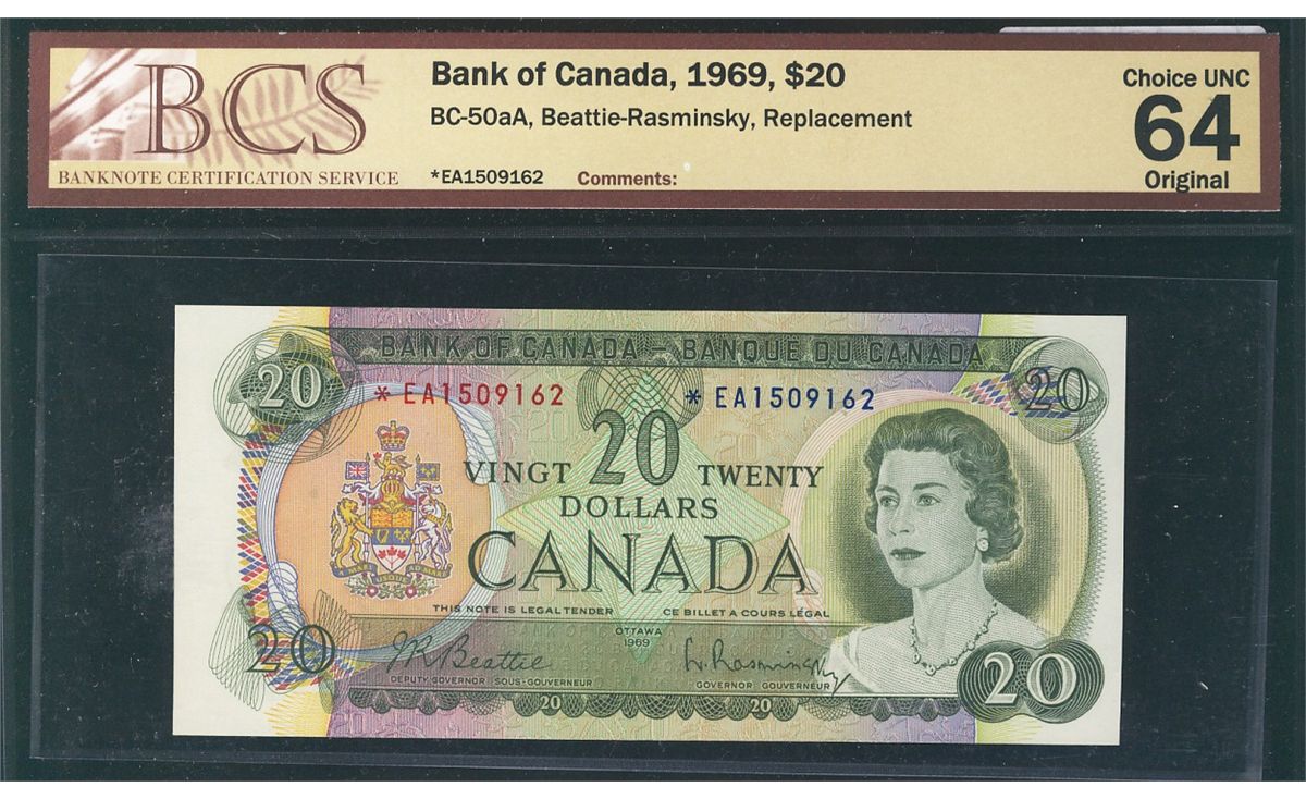 1969 $20 BC-50aA #*EA1509162 BCS CH UNC64.