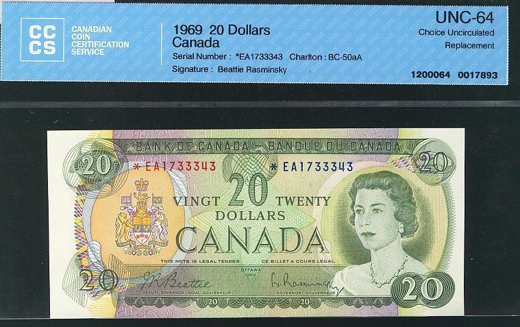 1969 $20 BC-50aA #*EA1733343 CCCS CH UNC64.