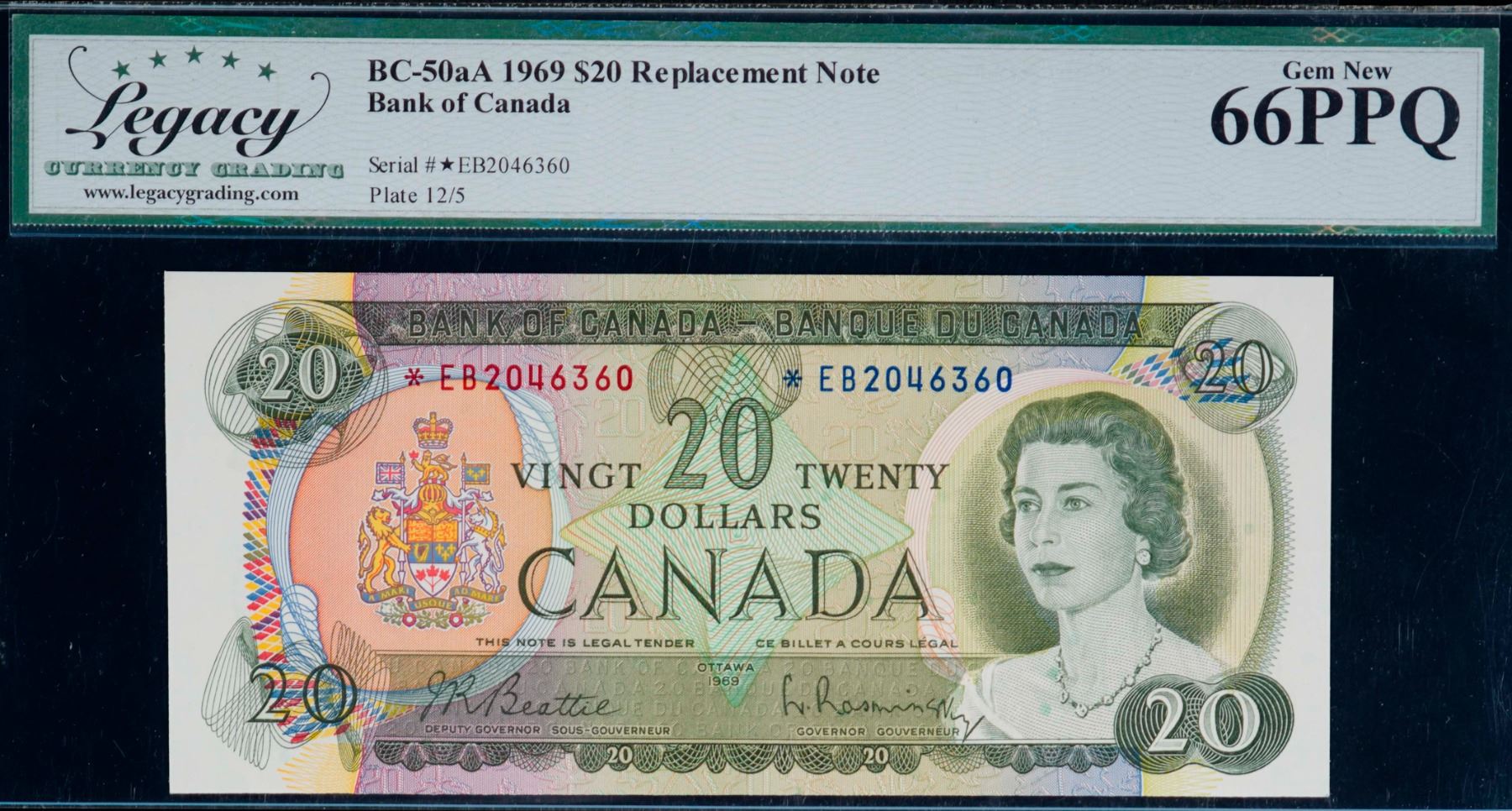 1969 $20 BC-50aA #*EB2046360, Legacy Gem Superb Gem Uncirculated-66PPQ.