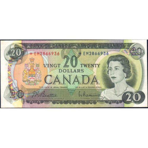 1969 Twenty Dollars Replacement Beattie-Rasminsky, BC-50aA Serial Number *EM2866936, PMG Gem Uncirculated 65 Exceptional Paper Quality