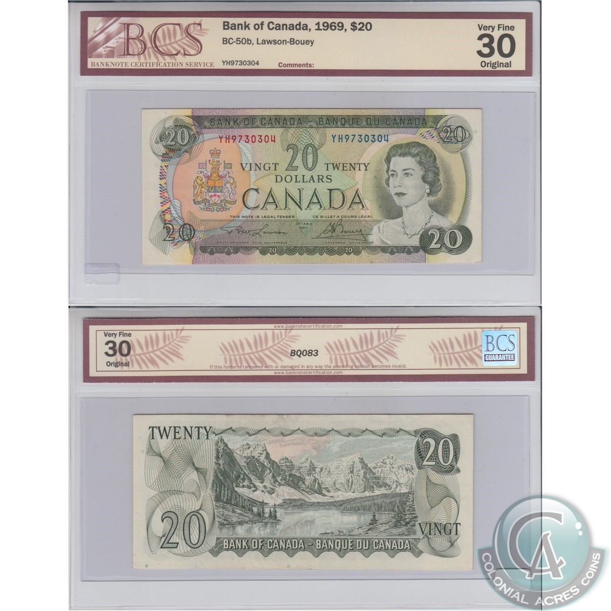 1969 $20 BC-50b Bank of Canada Lawson-Bouey Note YH perfix BCS Certified VF-30