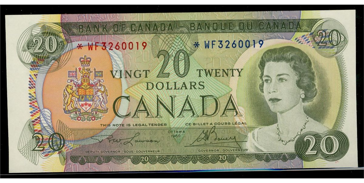 1969 $20 BC-50bA #*WF3260019. Crisp original AU/UNC.