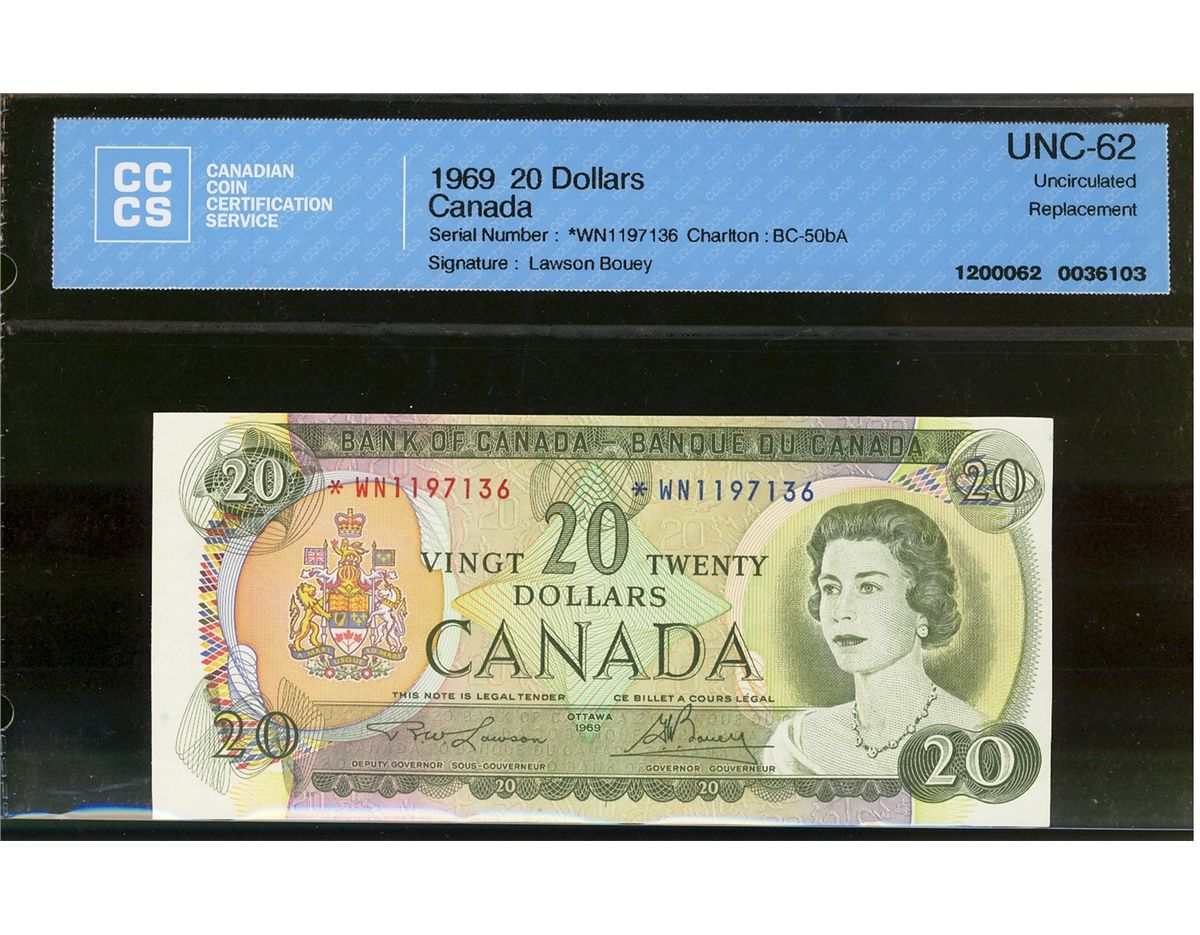 1969 $20 BC-50bA #*WN1197136 CCCS CH UNC62,