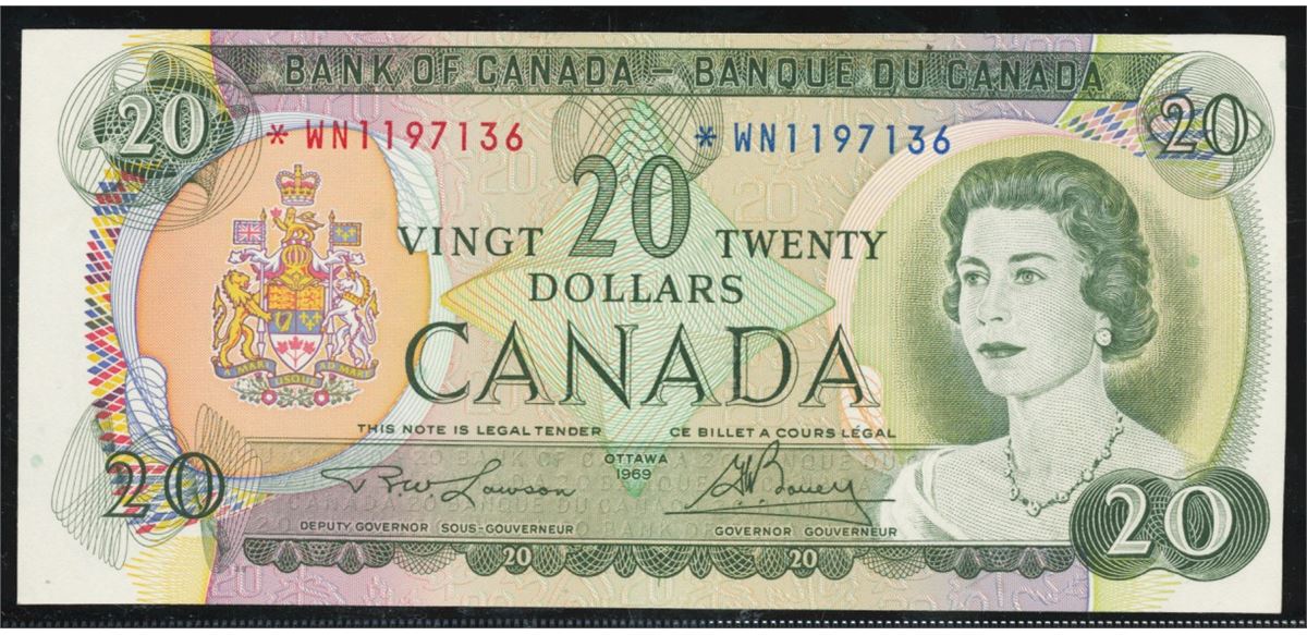 1969 $20 BC-50bA #*WN1197136, CCCS CH UNC63.