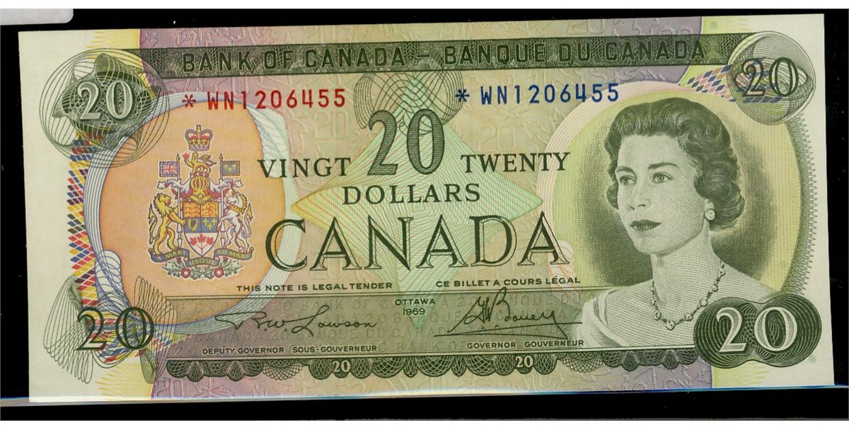 1969 $20 BC-50bA #*WN1206455. Crisp original AU.