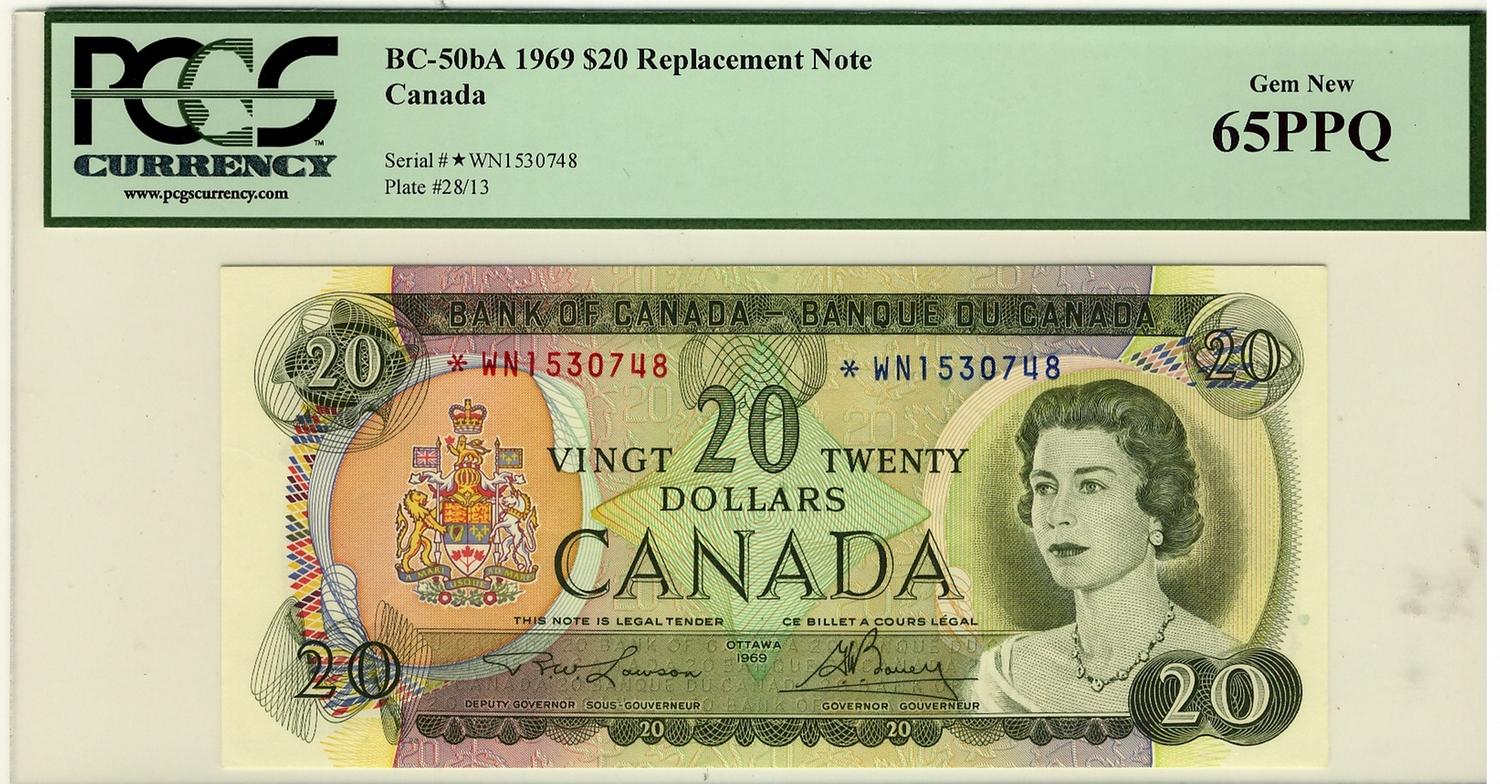 1969 $20 BC-50bA #*WN1530748 PCGS GEM UNC 65PPQ.