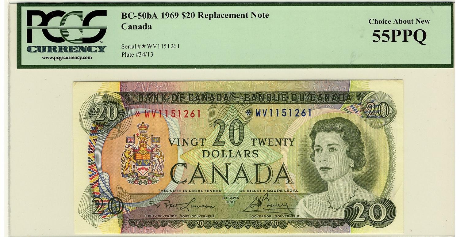 1969 $20 BC-50bA #*WV1151261, PCGS CH AU55PPQ.