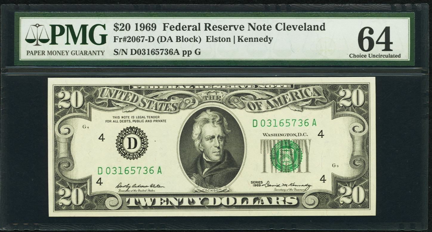 One 1969 $20 Cleveland Federal Reserve Note PMG 64.