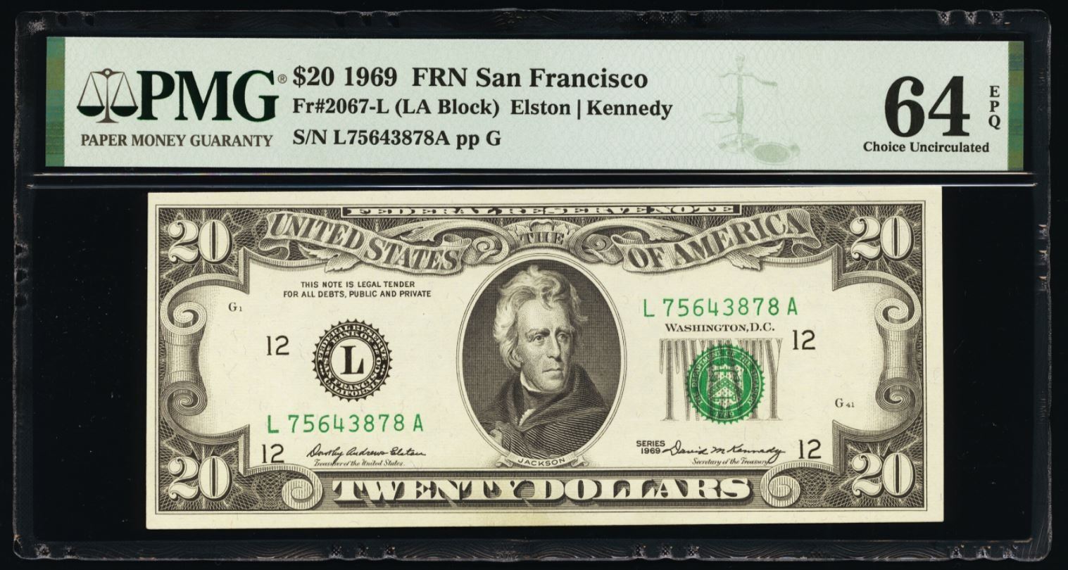 One 1969 $20 San Francisco FRN PMG 64EPQ.