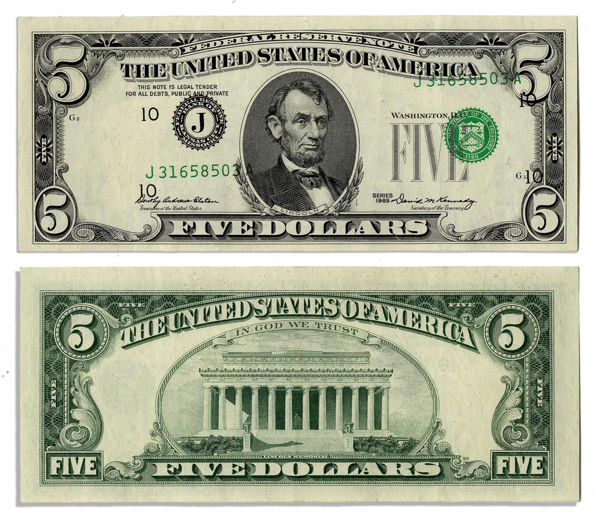 $5 Federal Reserve Error Note -- Series 1969, Kansas City -- Strong Third Print Shift