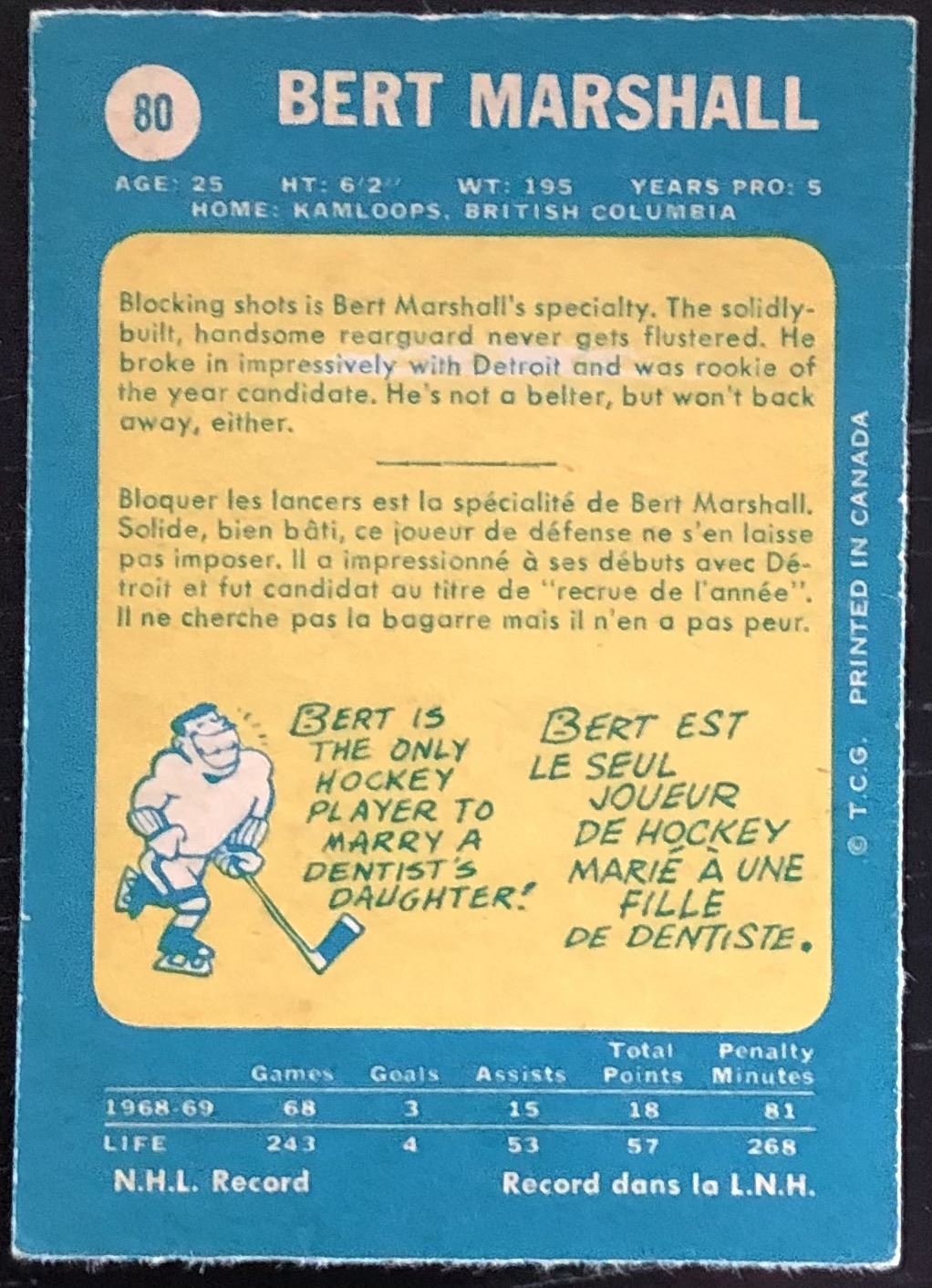 Card #80 NHL, hockey, vintage, OPC
