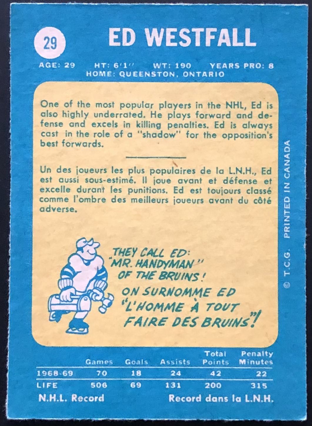 Card #29 NHL, hockey, vintage, OPC