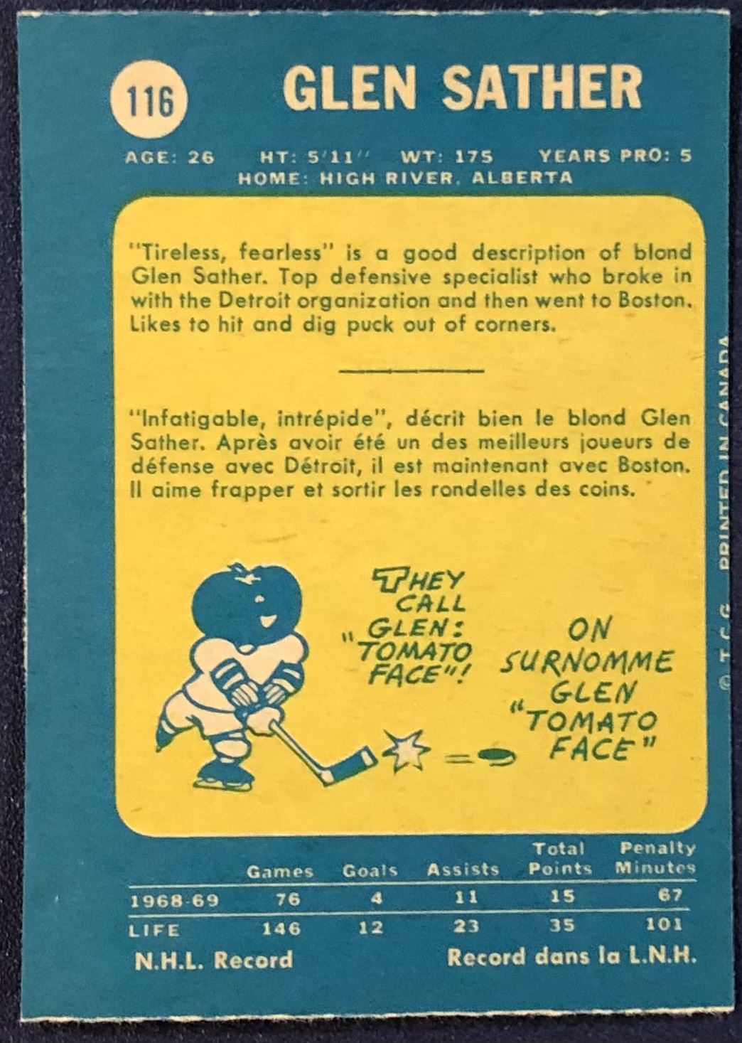 Card #116 OPC, NHL, hockey, vintage, hall of fame