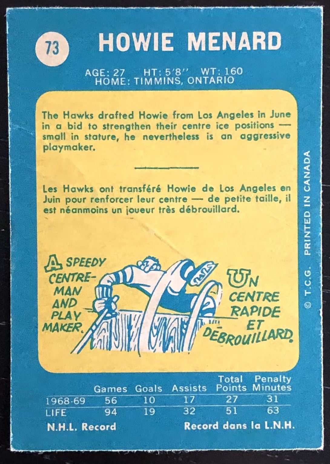 Card #73 NHL, hockey, vintage, rookie, OPC