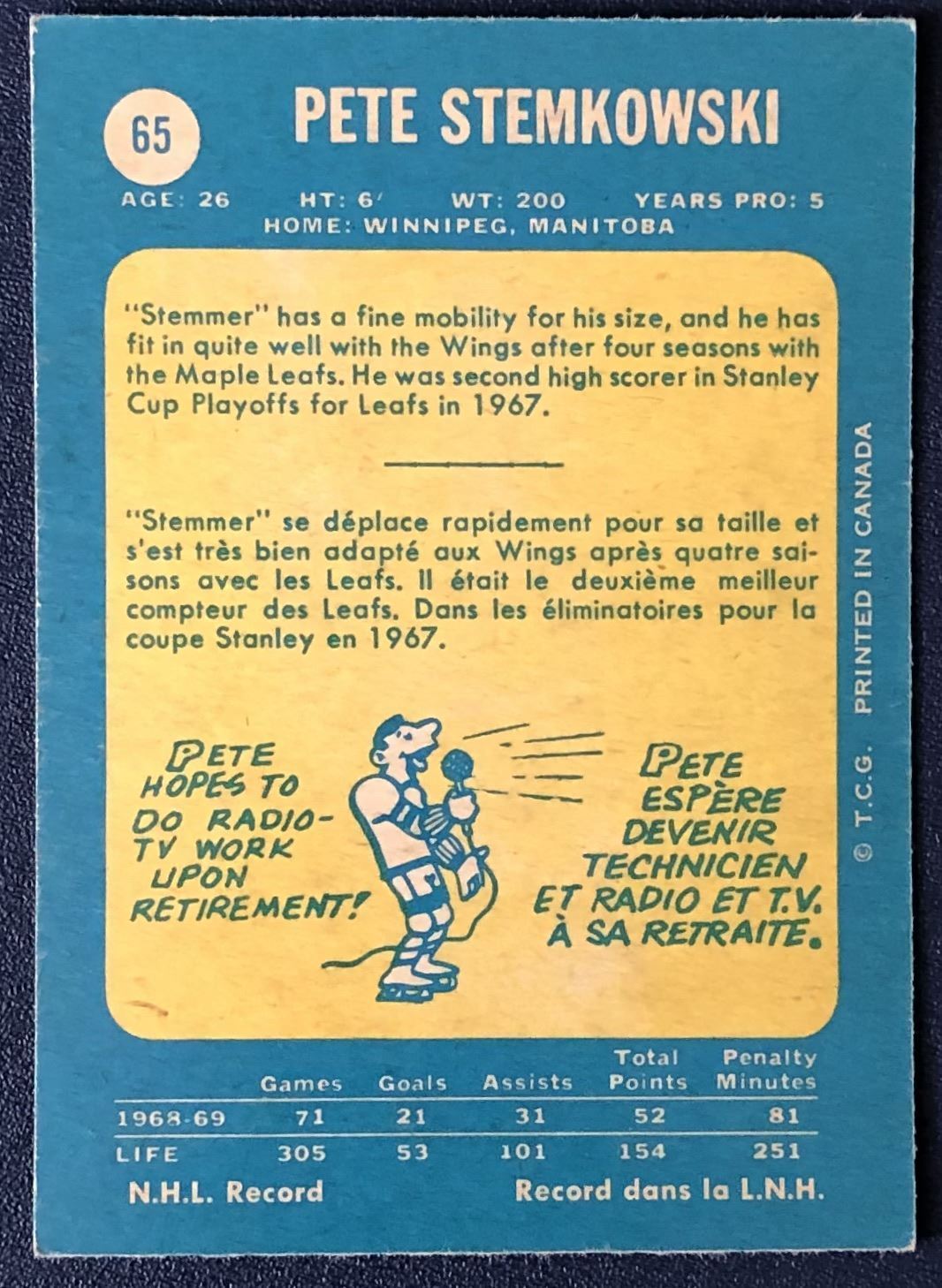 Card #65 NHL, hockey, vintage, OPC